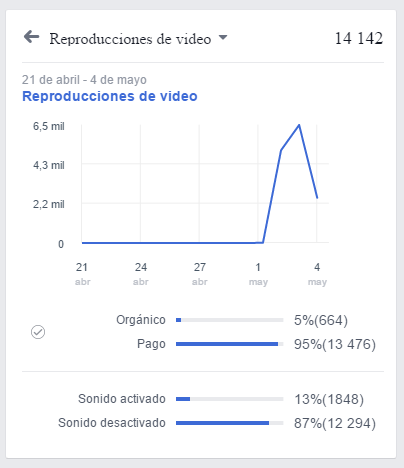 Es el detalle de los días en los que la audiencia vió tu publicación. En ese apartado también, podés chequear si el público activó o no el sonido en la reproducción del video. Eso te servirá para evaluar si le dieron mayor importancia a las imágenes o al contenido. Conociendo esto, podés colocar el foco en uno u otro, dependiendo del rubro de tu FanPage.